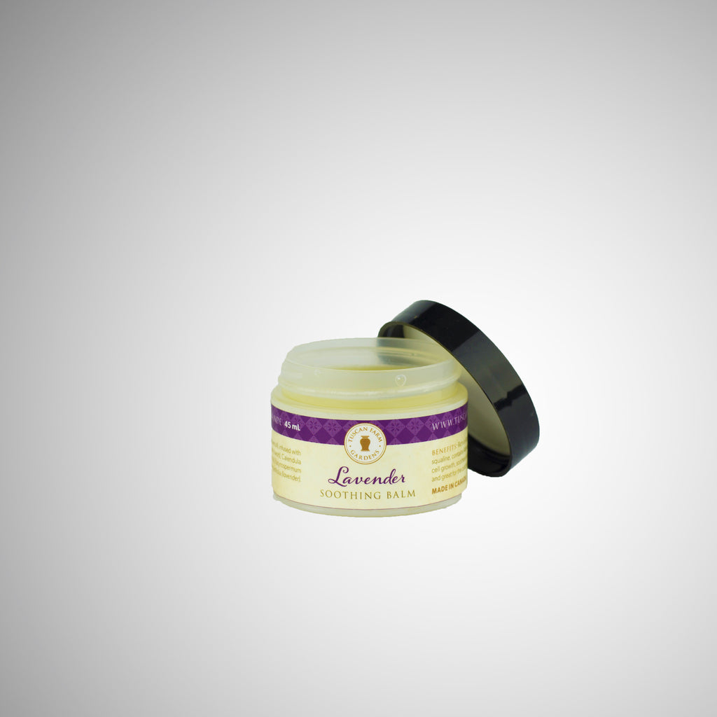 Our Lavender Soothing Balm is a richly textured balm that quickly soaks into the skin to soothe dry, irritated skin. Excellent as a cuticle cream, for sunburn skin and for dry patches. Rich with organic herbs to heal and hydrate.