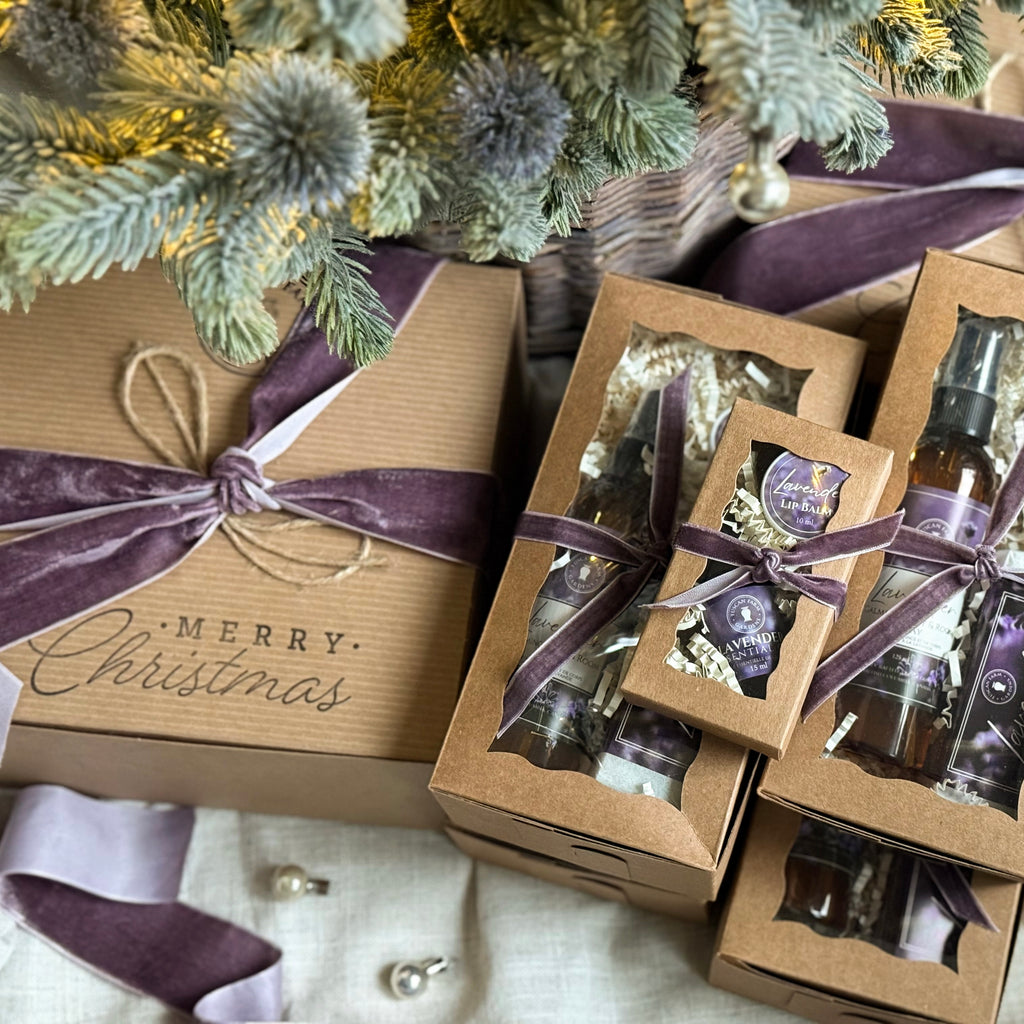 Sometimes the best things come in tiny packages. A lavender essential oil and a lip balm, tied with a velvet ribbon and tucked into a box that fits in the palm of your hand. Perfect for tucking into a stocking.